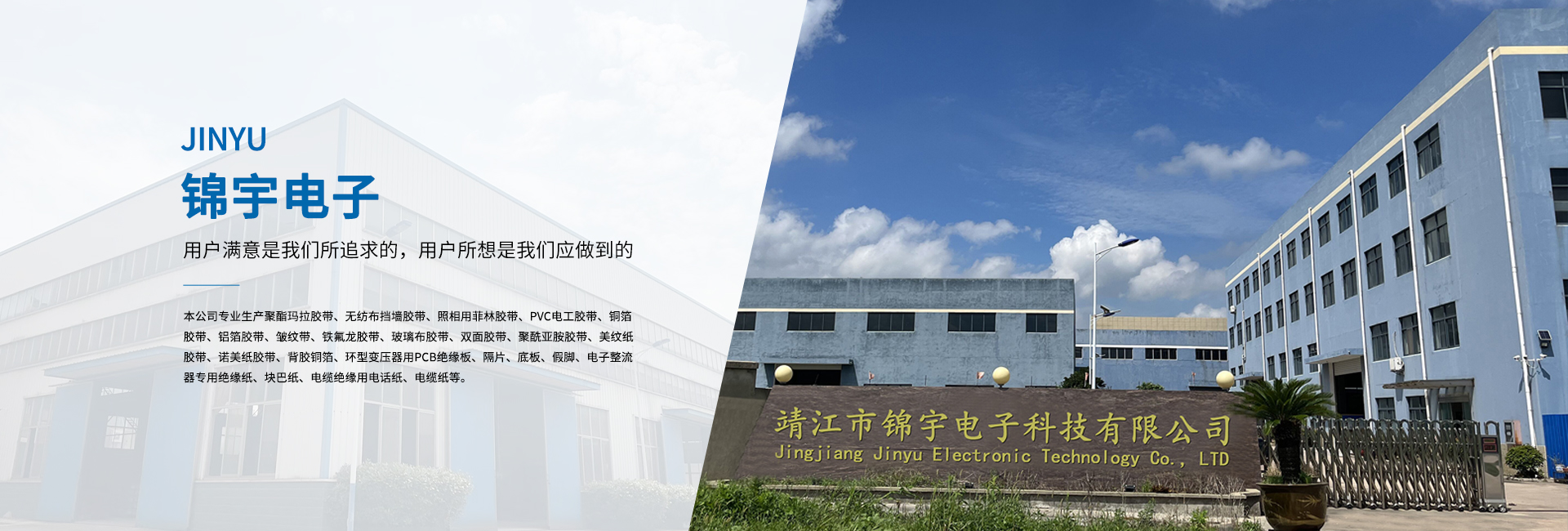 靖江市錦宇電子科技有限公司地處—靖江市。與上海、南京隔江相望,滬寧高速和京滬高速將蘇錫常及京廣連為一體,東依開(kāi)放港口城市南通,西連新長(zhǎng)鐵路,南臨長(zhǎng)江萬(wàn)噸船用碼頭,北接寧通一級(jí)高速公路,水陸交通便捷,經(jīng)營(yíng)環(huán)境優(yōu)良。 本公司專(zhuān)業(yè)生產(chǎn)聚酯瑪拉膠帶、無(wú)紡布擋墻膠帶、照相用菲林膠帶、PVC電工膠帶、銅箔膠帶、鋁箔膠帶、皺紋帶、鐵氟龍膠帶、玻璃布膠帶、雙面膠帶、聚酰亞胺膠帶、美紋紙膠帶、諾美紙膠帶、背膠銅箔、環(huán)型變壓器用PCB絕緣板、隔片、底板、假腳、電子整流器專(zhuān)用絕緣紙、塊巴紙、電纜絕緣用電話紙、電纜紙等。 公司依靠先進(jìn)的科學(xué)管理,精良的生產(chǎn)裝備,合理的工藝設(shè)計(jì),完善的檢測(cè)設(shè)備,以著“科技創(chuàng)新、質(zhì)量為本、誠(chéng)信服務(wù)”的信念。并嚴(yán)格貫徹ISO9001國(guó)際質(zhì)量體系的程序和規(guī)格,為廣大用戶(hù)提供優(yōu)質(zhì)的產(chǎn)品與滿(mǎn)意的服務(wù)。 多年來(lái),公司本著“用戶(hù)滿(mǎn)意是我們所追求的,用戶(hù)所想是我們應(yīng)做到的”的經(jīng)營(yíng)理念;“質(zhì)量保障,價(jià)格合理,服務(wù)誠(chéng)信”的企業(yè)宗旨。熱忱歡迎海內(nèi)外各界人士、朋友前來(lái)洽談、合作,攜手共創(chuàng)輝煌的明天。